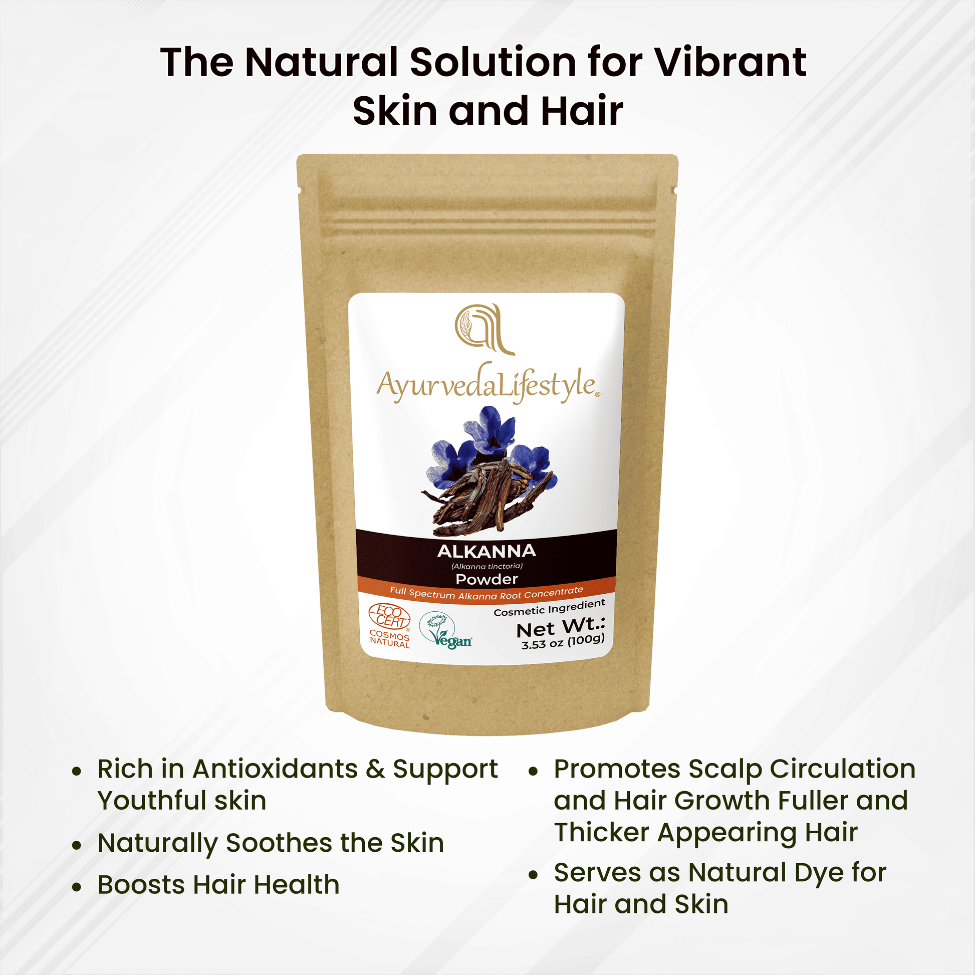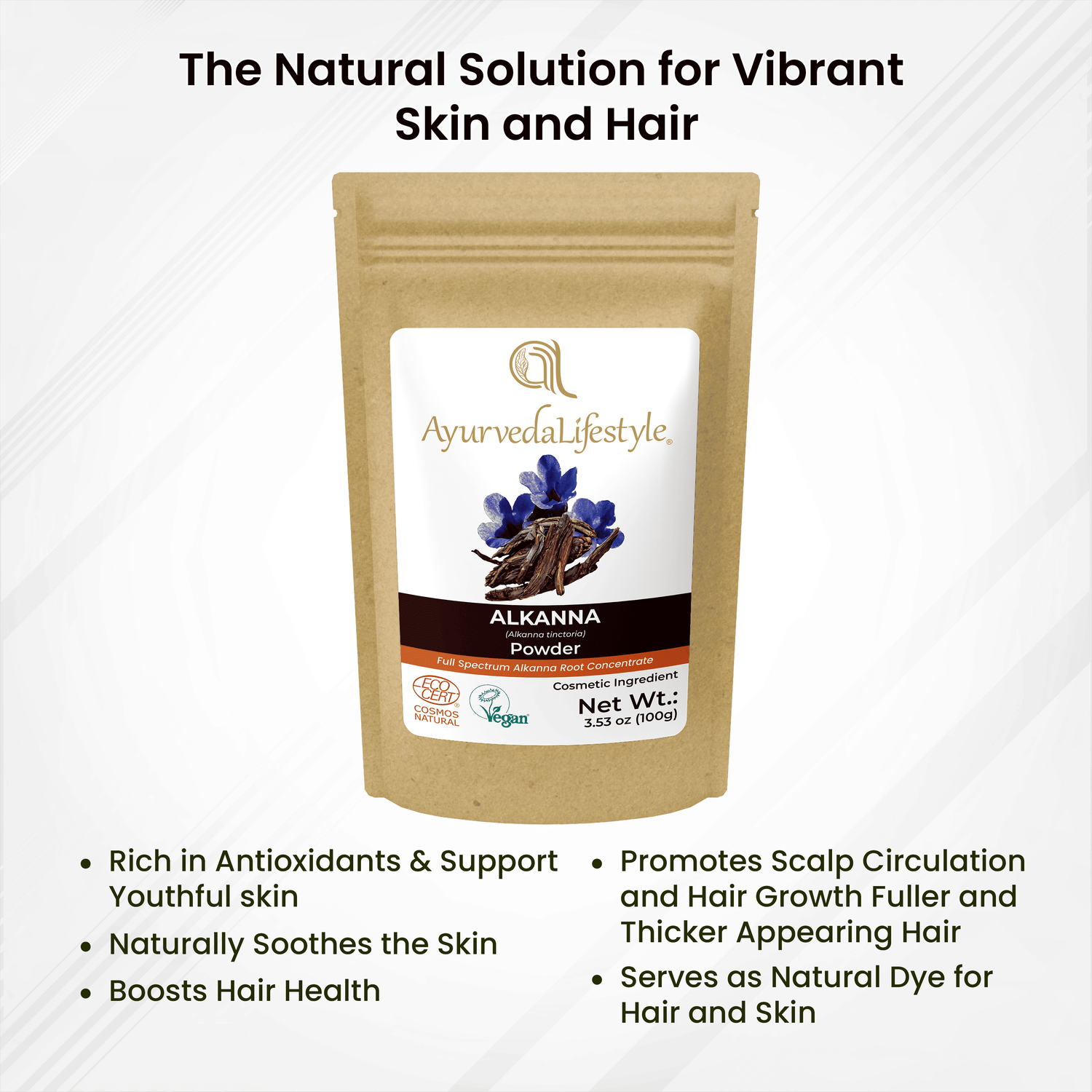 Alkanna Powder, derived from the root of the Alkanna tinctoria plant, is a powerful natural ingredient known for its rich, vibrant color and remarkable beauty benefits. Traditionally used in Ayurvedic and Mediterranean beauty rituals, Alkanna Powder is rich in antioxidants, beneficial compounds and natural pigments that provide rejuvenating and restorative properties for both skin and hair. Whether used for its skin-healing properties or to enhance the health of your hair, this deep-red powder has been prized for centuries for its ability to impart a natural, youthful glow and promote strong, healthy strands.