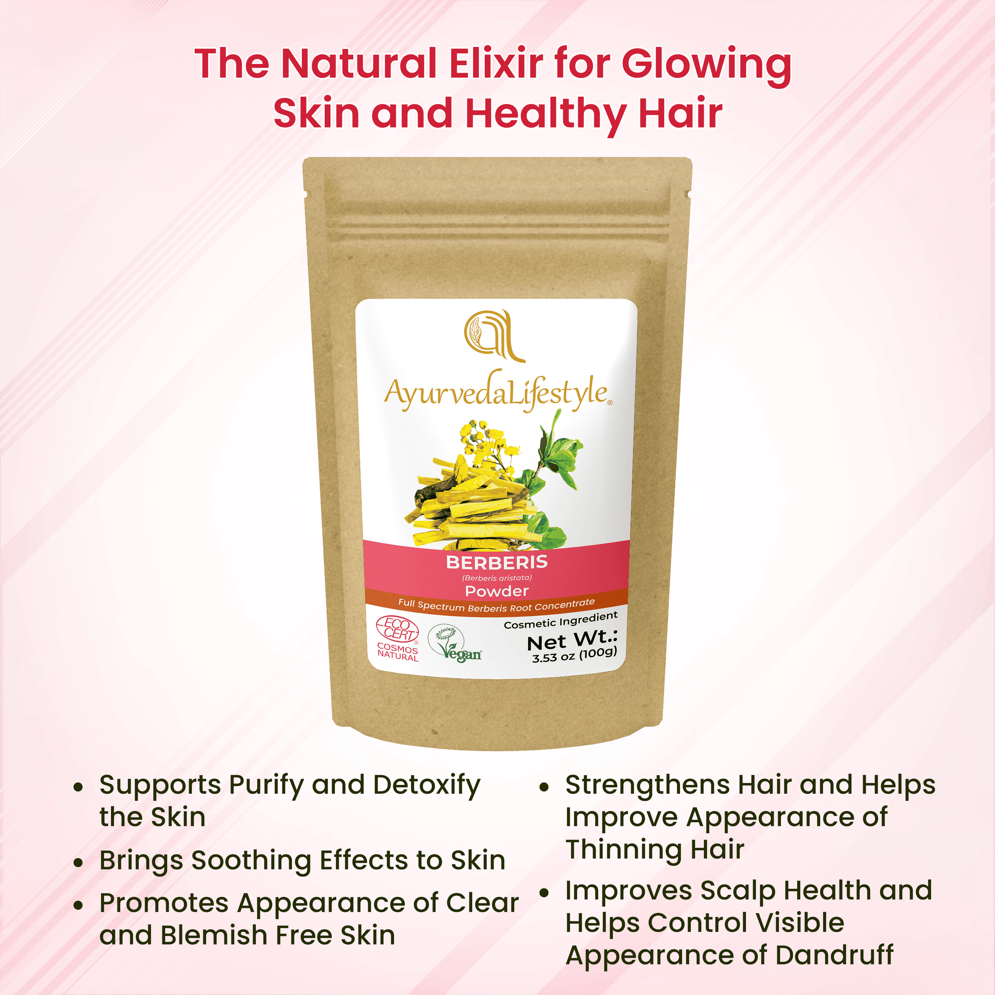 Berberis Powder is known for its detoxifying properties, helping to cleanse the skin from within leading to clearer, fresher skin.