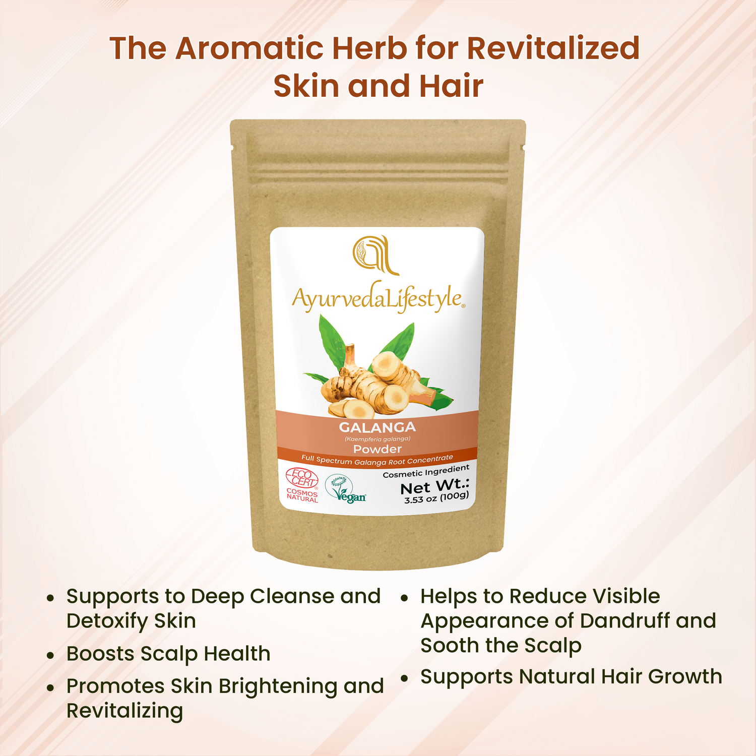 Galanga Powder can effectively reduce visible appearance of dandruff, brings soothing effect to scalp, making it an effective product for scalp care.