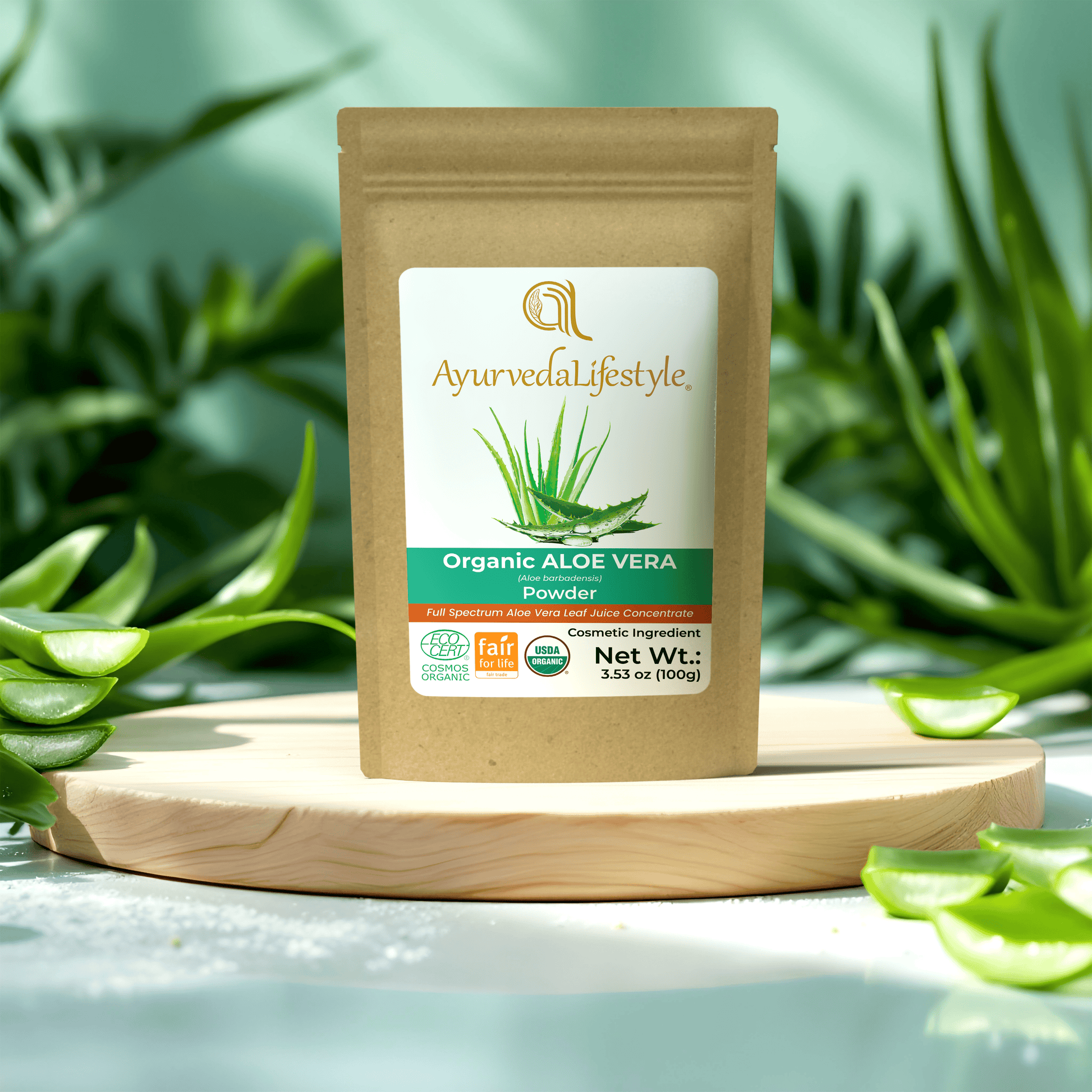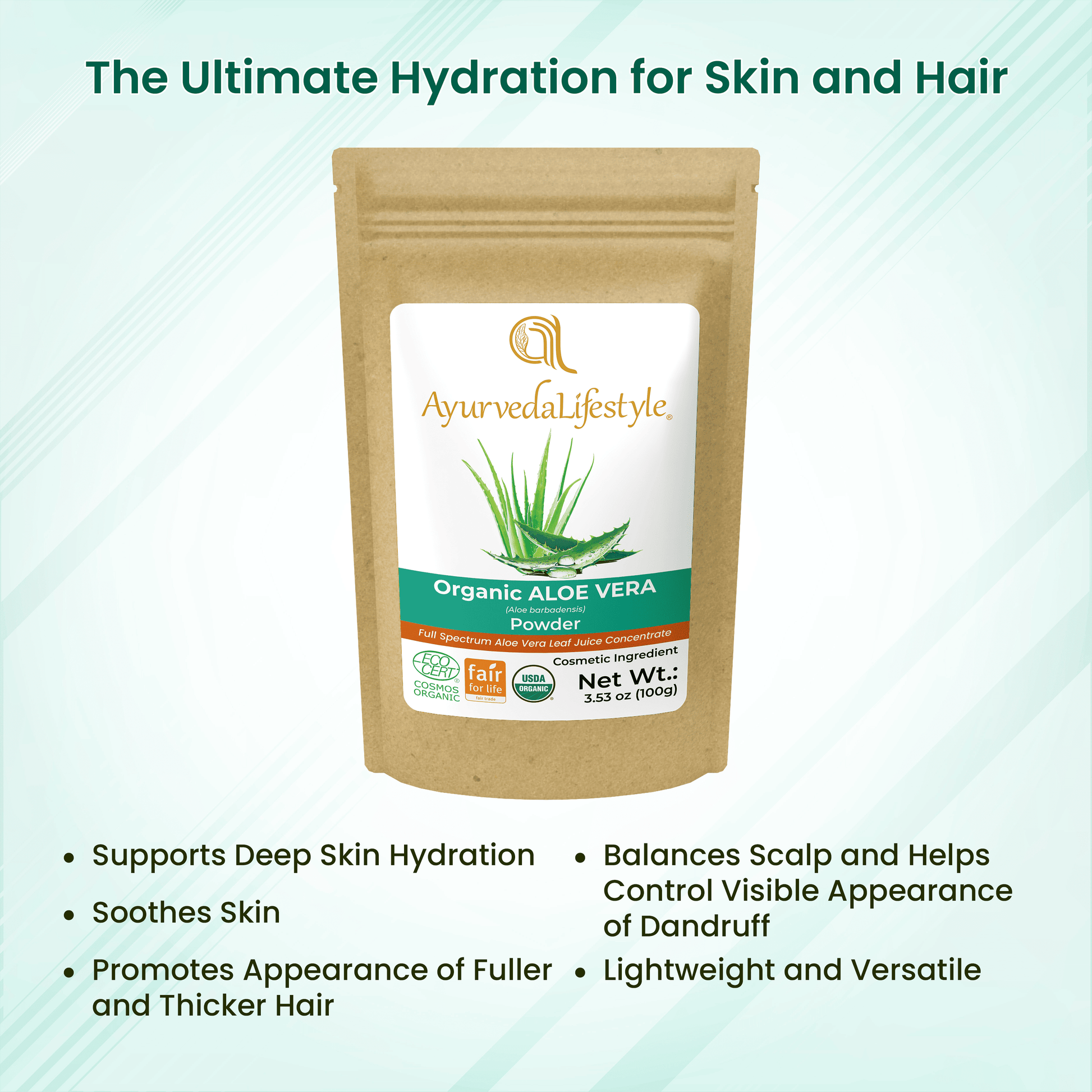 Organic Aloe Vera Gel Powder, crafted from the dehydrated inner gel of the Aloe barbadensis plant, is a significant source of hydration and nourishment. Rich in essential vitamins, minerals, enzymes, and amino acids, it offers soothing and rejuvenating benefits for both skin and hair. Known for its cooling properties, Aloe Vera Gel Powder alleviates dryness, soothes skin and scalp while deeply conditioning and promoting overall vitality. This lightweight and versatile ingredient is a must-have for natural beauty enthusiasts seeking radiant skin and healthy, luscious hair.