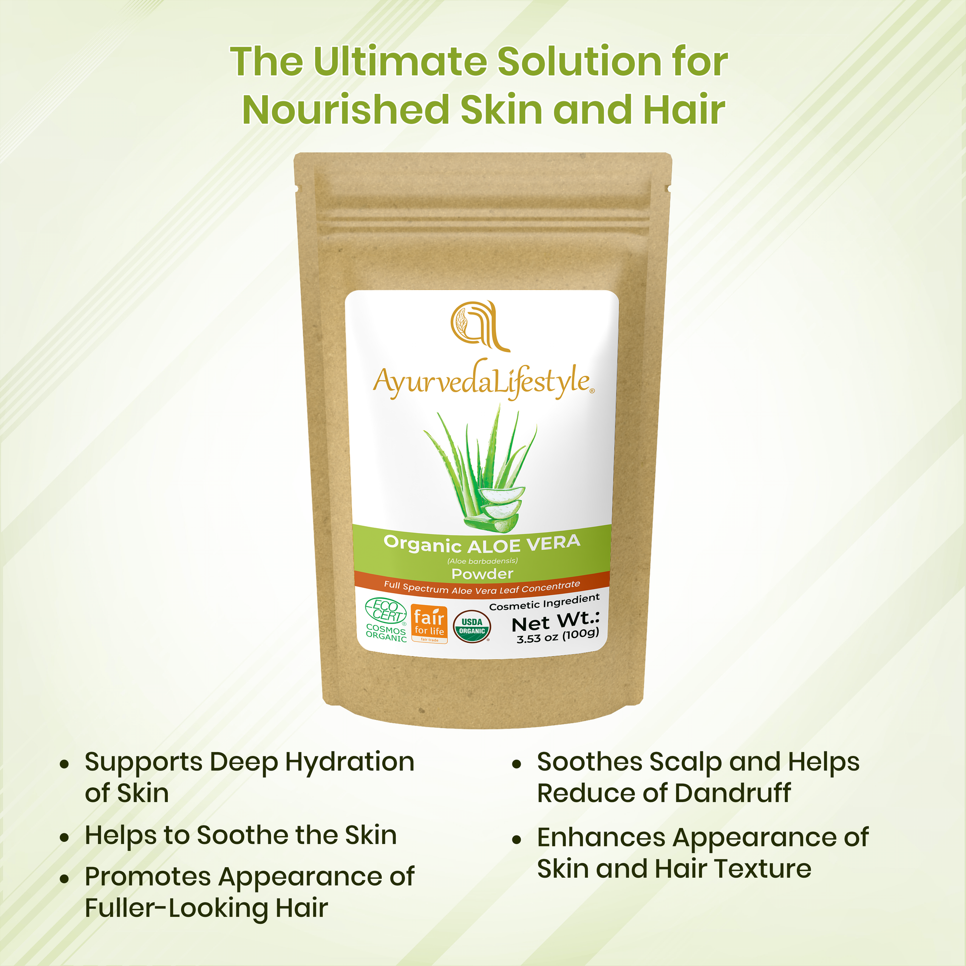 Combine Aloe Vera Powder with water or coconut oil to create a hair mask. Apply it to the scalp and hair, leave on for 20-30 minutes, and rinse thoroughly for soft, nourished locks.