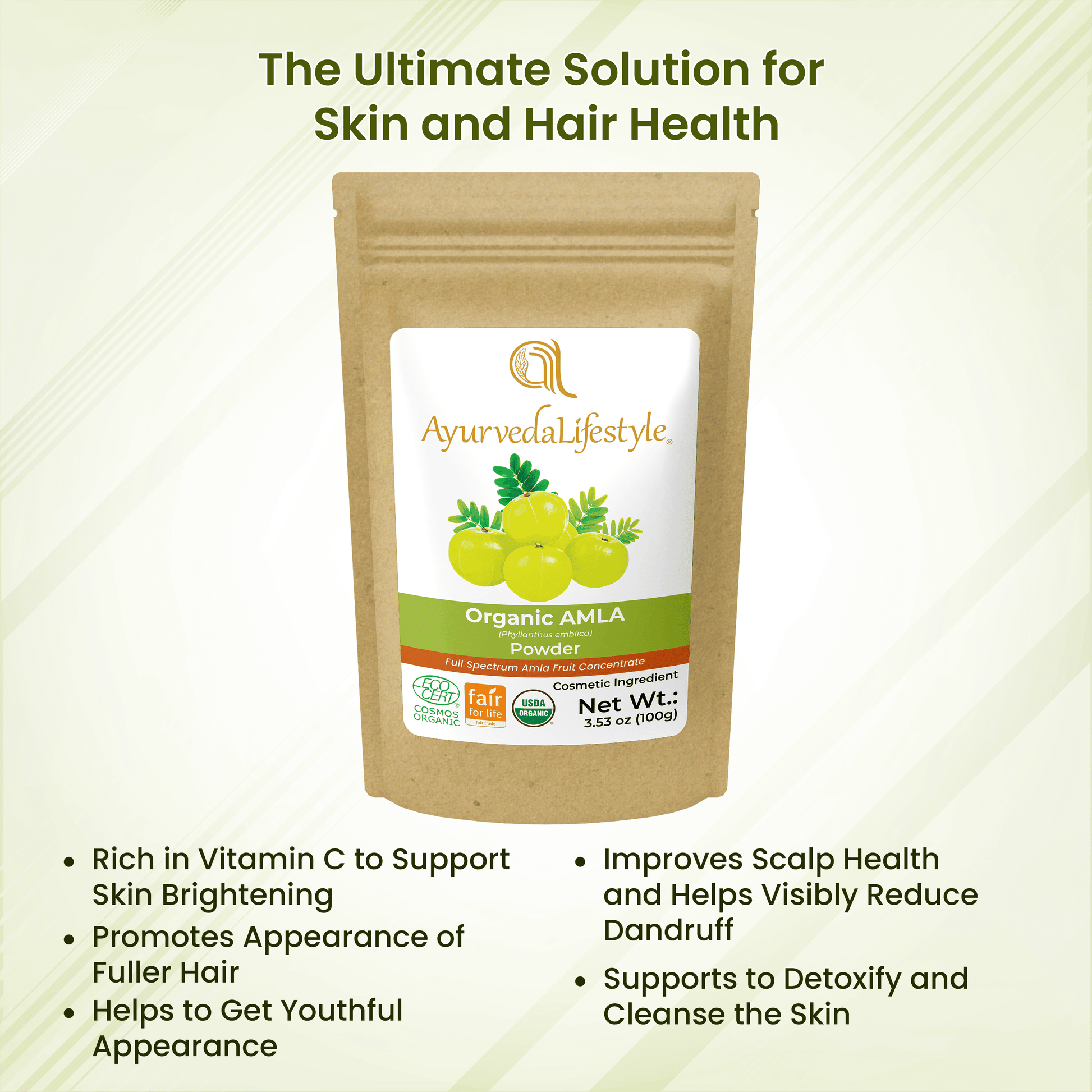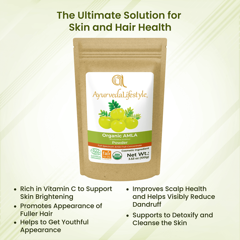 Amla Powder is packed with vitamin C, which helps brighten the skin, promote clear and spot-less appearance with an even complexion. It also helps to get skin with glowing and youthful appearance.