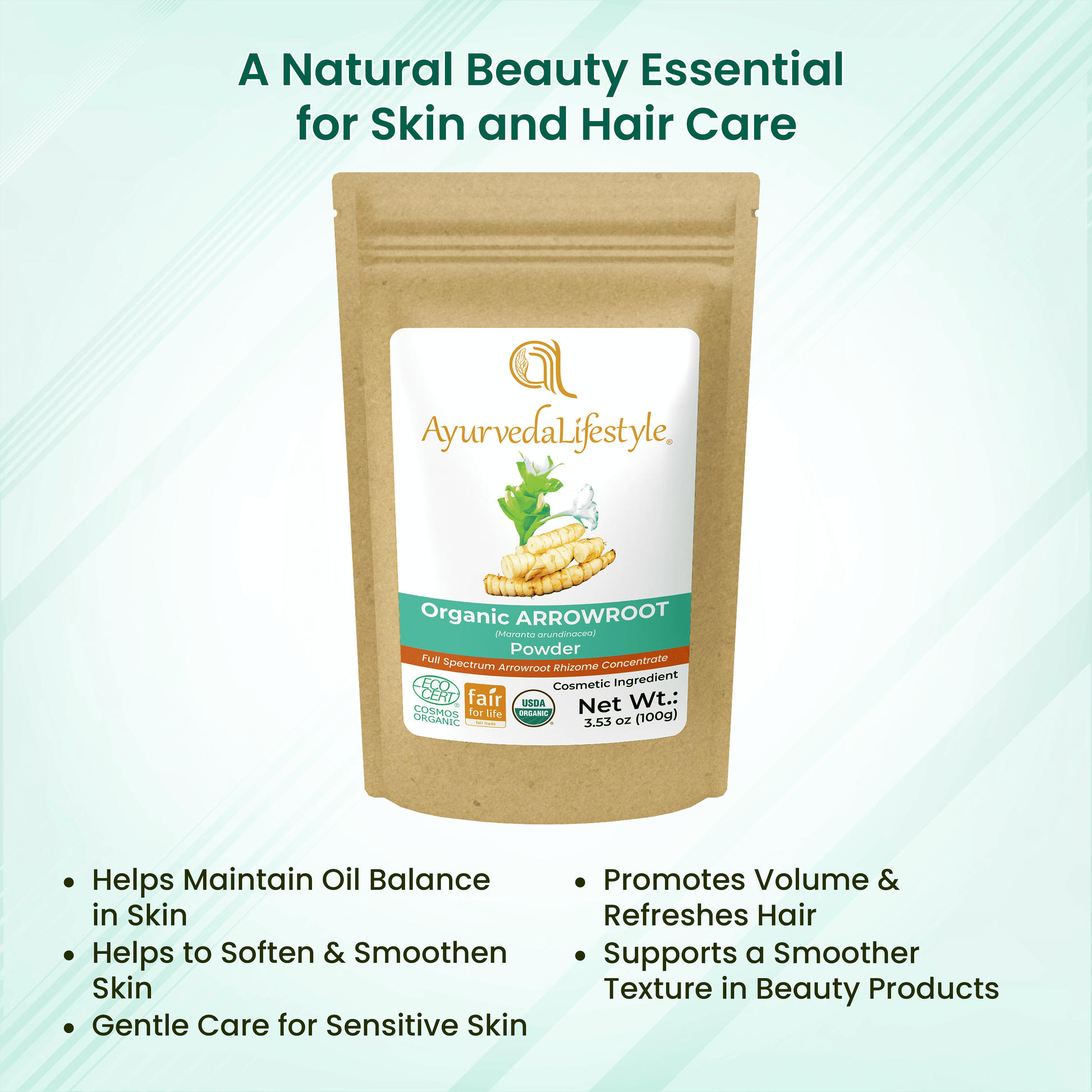 When used as a natural dry shampoo, Arrowroot Powder can absorb oil and refresh the scalp, leaving hair voluminous and non-greasy. It’s especially effective for prolonging hairstyles between washes.