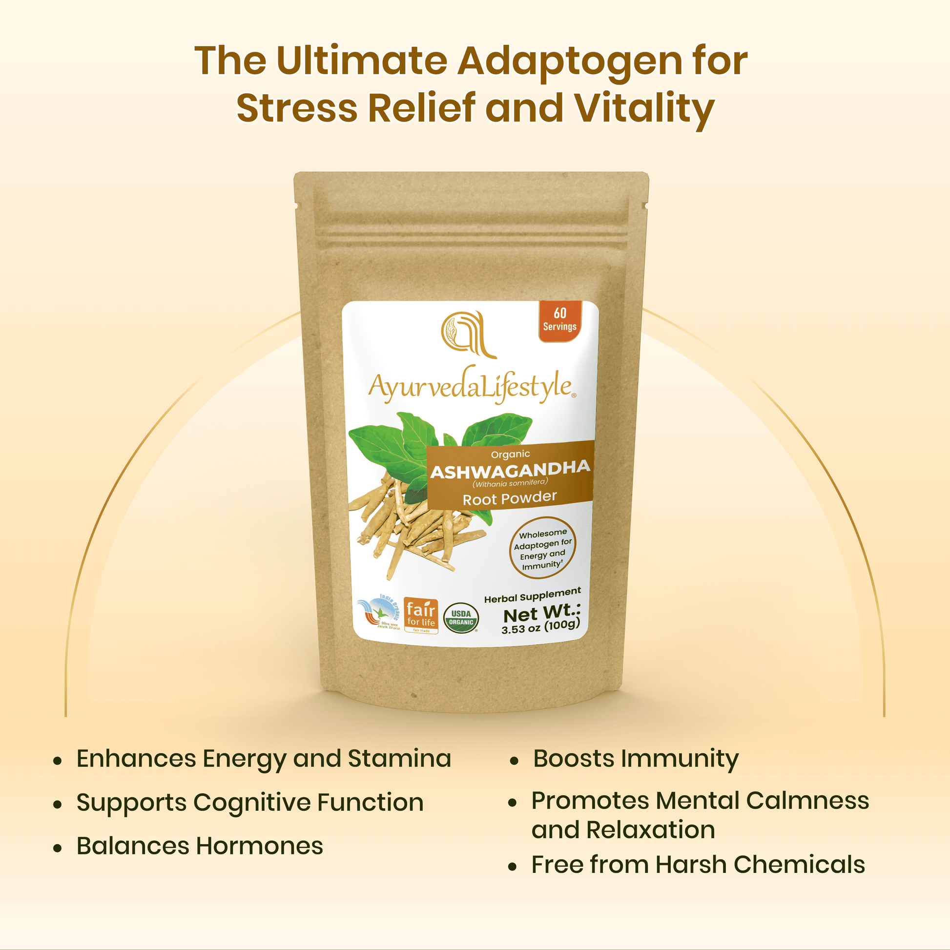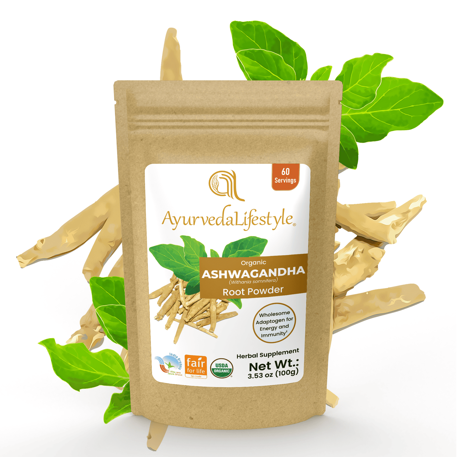 At Ayurveda Lifestyle, we provide Ashwagandha made from organic roots, ensuring the highest quality and purity. Our Ashwagandha is free from chemicals, pesticides, and artificial additives, ensuring you receive only the best of nature's benefits.