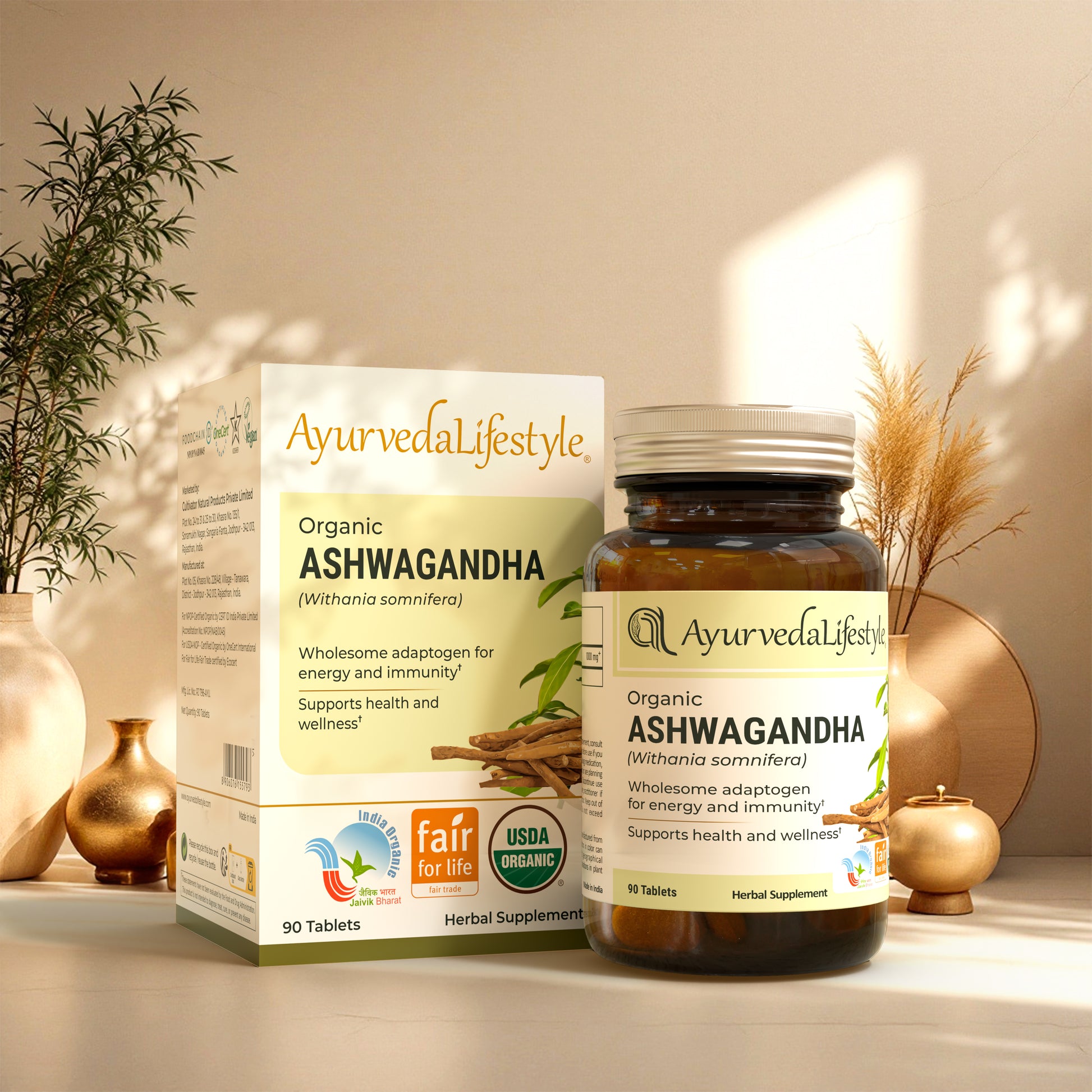 Organic Ashwagandha, known as the "king of herbs" in Ayurveda, has been revered for centuries for its adaptogenic qualities. At Ayurveda Lifestyle, we offer you the power of this ancient herb in the form of Organic Ashwagandha Tablets, carefully crafted from the finest organic roots. Ashwagandha is renowned for its ability to manage stress, enhance energy, and promote overall mental clarity. Whether you are seeking to calm your mind, strengthen your body, or achieve a sense of balance, our Organic Ashwagandha Tablets provide natural support to help you thrive in today’s fast-paced world.