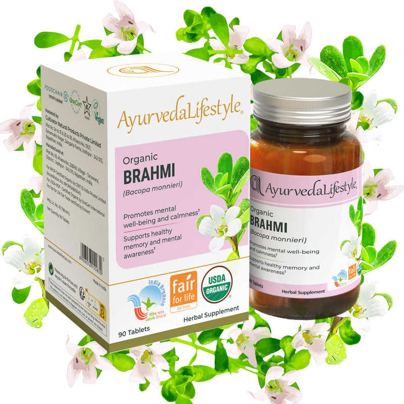 Organic Brahmi Tablet supports brain health, helps promote memory and focus, and manage stress and anxiety.