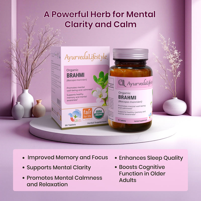 Organic Brahmi, known as the “brain tonic” in Ayurveda, has been used for centuries to enhance cognitive function, improve memory, and promote mental clarity. At Ayurveda Lifestyle, we offer you the natural benefits of this extraordinary herb in the form of Organic Brahmi Tablets, made from the purest organic Brahmi leaves. Brahmi is renowned for its ability to calm the mind, manage stress, and support mental wellness, making it the ideal herb for those seeking to boost focus, enhance memory, and maintain a sense of tranquility in their daily lives.