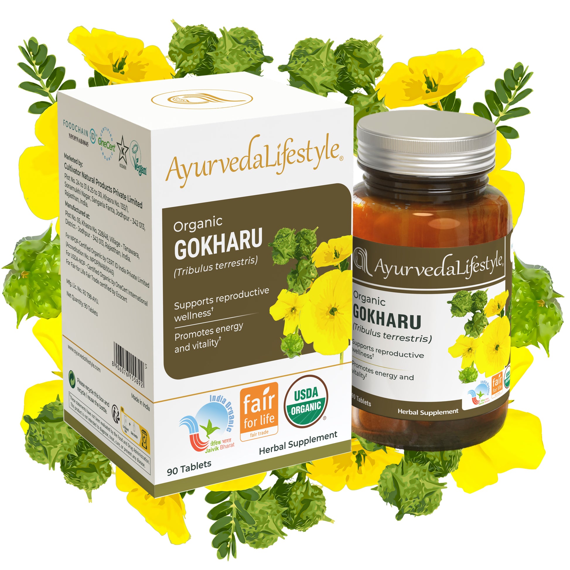 Organic Gokharu (also known as Tribulus Terrestris) is a revered herb in Ayurvedic medicine, known for its ability to enhance energy, improve strength, and support overall vitality. At Ayurveda Lifestyle, we offer you the finest Organic Gokharu Tablets, derived from the purest, organically grown Gokharu plants. This powerful herb is commonly used to improve physical performance, support urinary health, and balance hormones. Whether you're looking to boost energy levels, enhance endurance, or support your body's natural detoxification, Organic Gokharu Tablets are a great addition to your wellness routine.