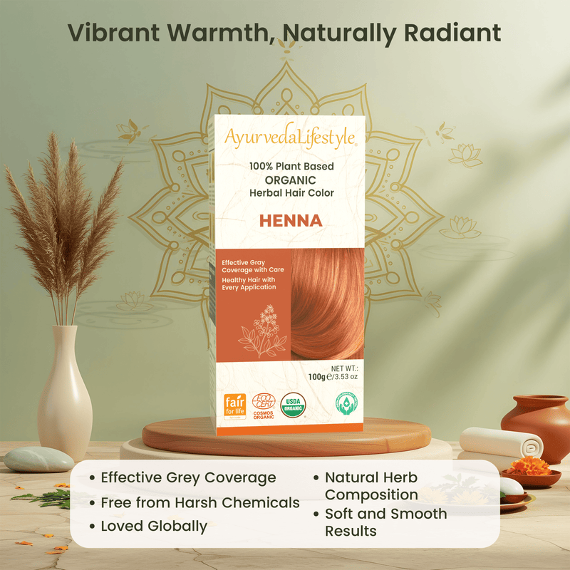 Perfect for those desiring a warm and earthy finish, Ayurveda Lifestyle’s Henna Hair Color combines timeless tradition with premium care. Let your hair shine with vitality, confidence, and a touch of nature’s brilliance.