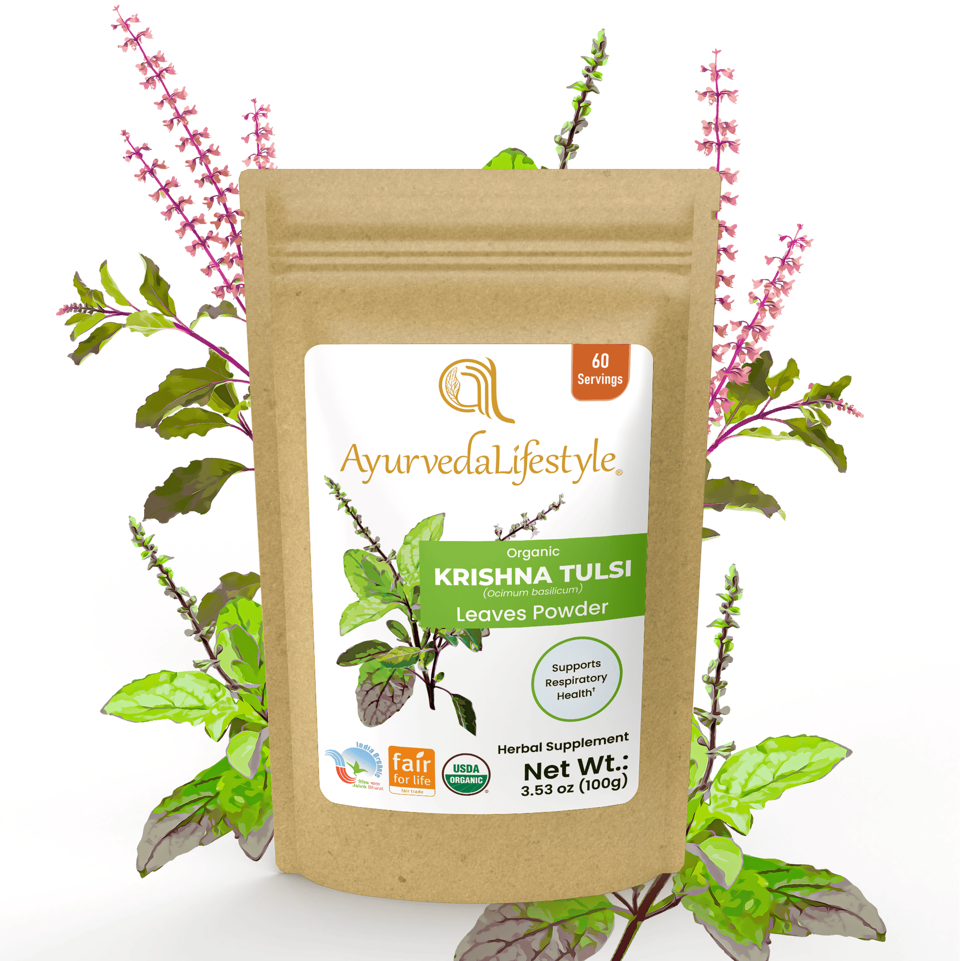 Ayurveda Lifestyle’s Krishna Tulsi Powder is organic, sustainably sourced, and crafted with over 37 years of expertise. It is certified by USDA, and Fair for Life, ensuring the highest quality, purity, and effectiveness, free from harmful chemicals or additives.