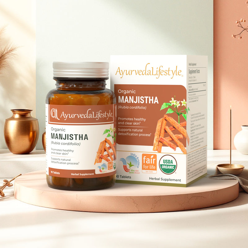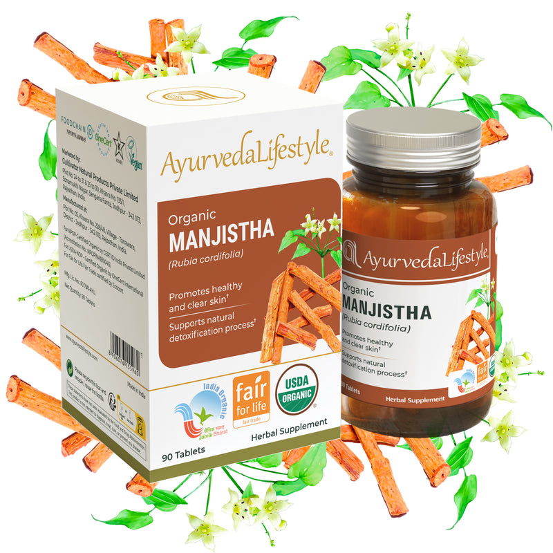 Organic Manjistha, also known as Rubia Cordifolia, is a treasured herb in Ayurveda, renowned for its ability to detoxify the blood, promote clear skin, and support overall lymphatic health. At Ayurveda Lifestyle, we bring you Organic Manjistha Tablets, crafted from the purest, organically grown Manjistha roots. This powerful herb is celebrated for its natural ability to cleanse impurities, balance Pitta dosha, and enhance your skin’s natural glow. Whether you’re looking to achieve radiant skin, manage inflammation, or support detoxification, our Organic Manjistha Tablets are your pathway to inner and outer harmony.