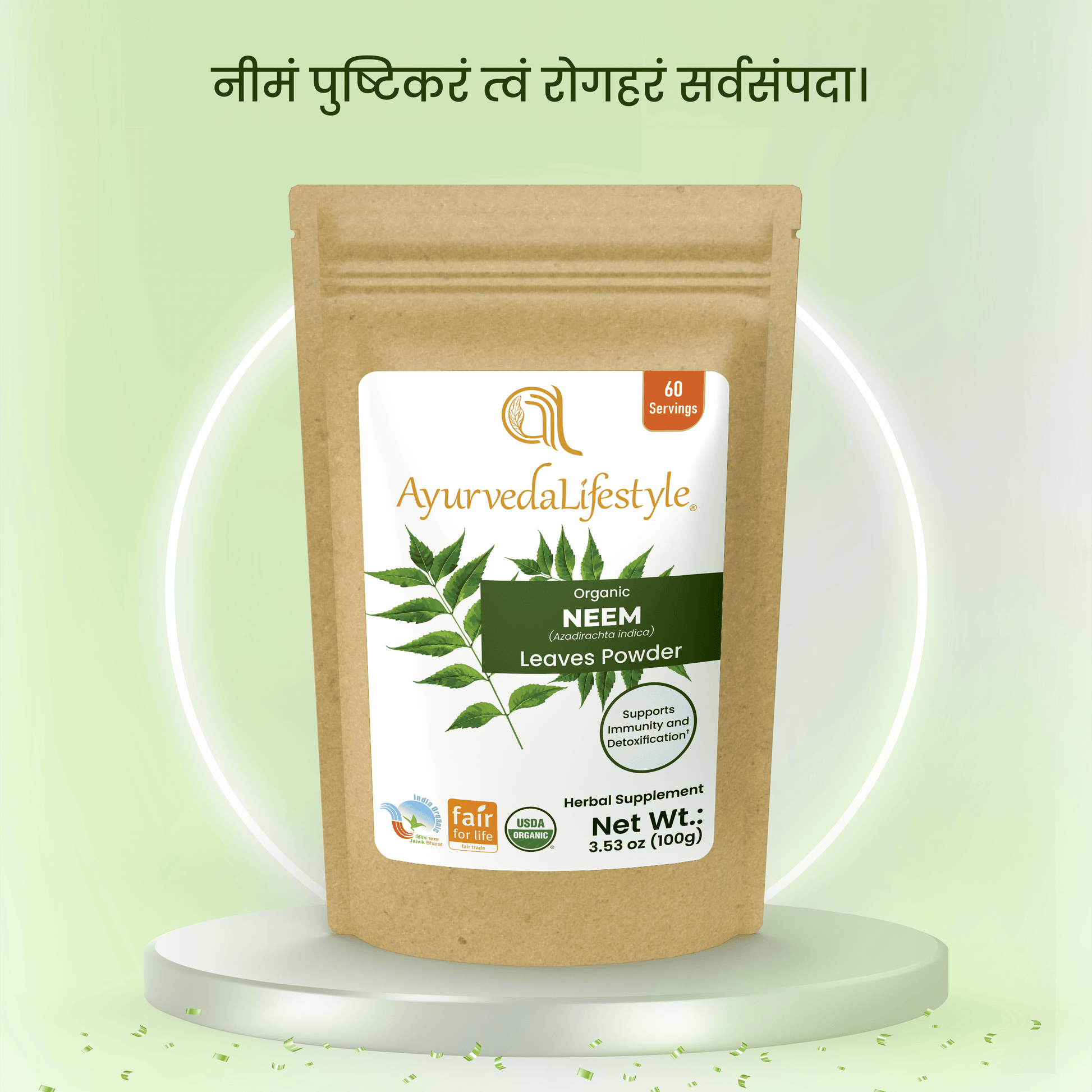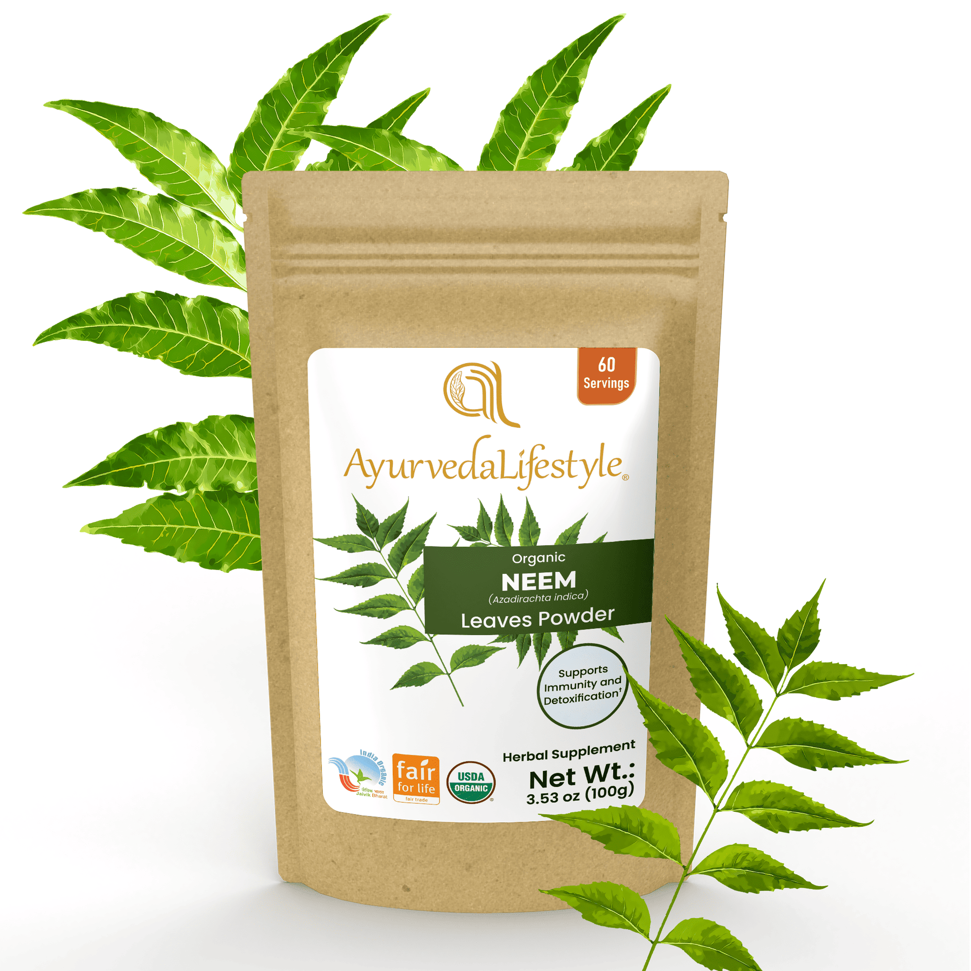 Ayurveda Lifestyle’s Neem Leaf Powder is organic, ethically sourced, and crafted with over 37 years of expertise. It is certified by USDA, and Fair for Life, ensuring purity, premium quality, and no harmful chemicals or additives.