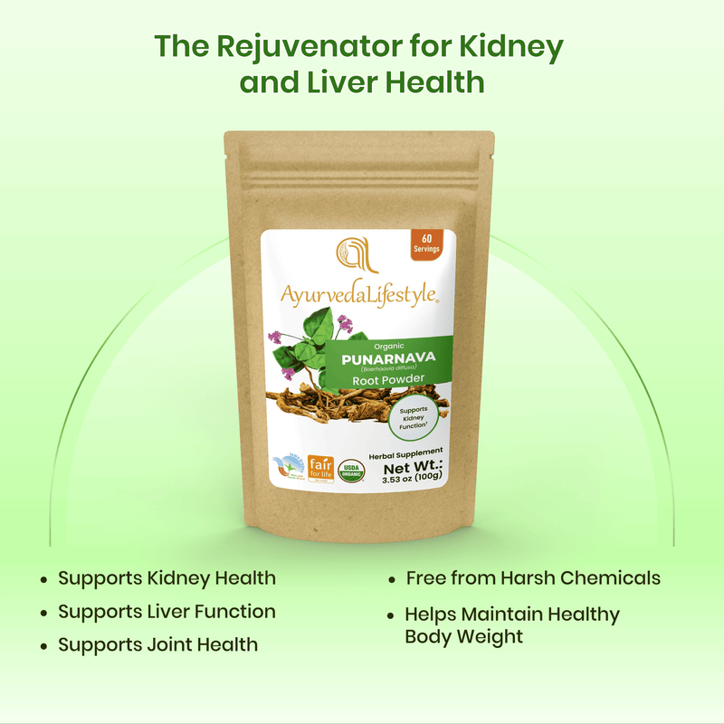- Supports Kidney Health: Punarnava promotes healthy kidney function by maintaining fluid balance in body.