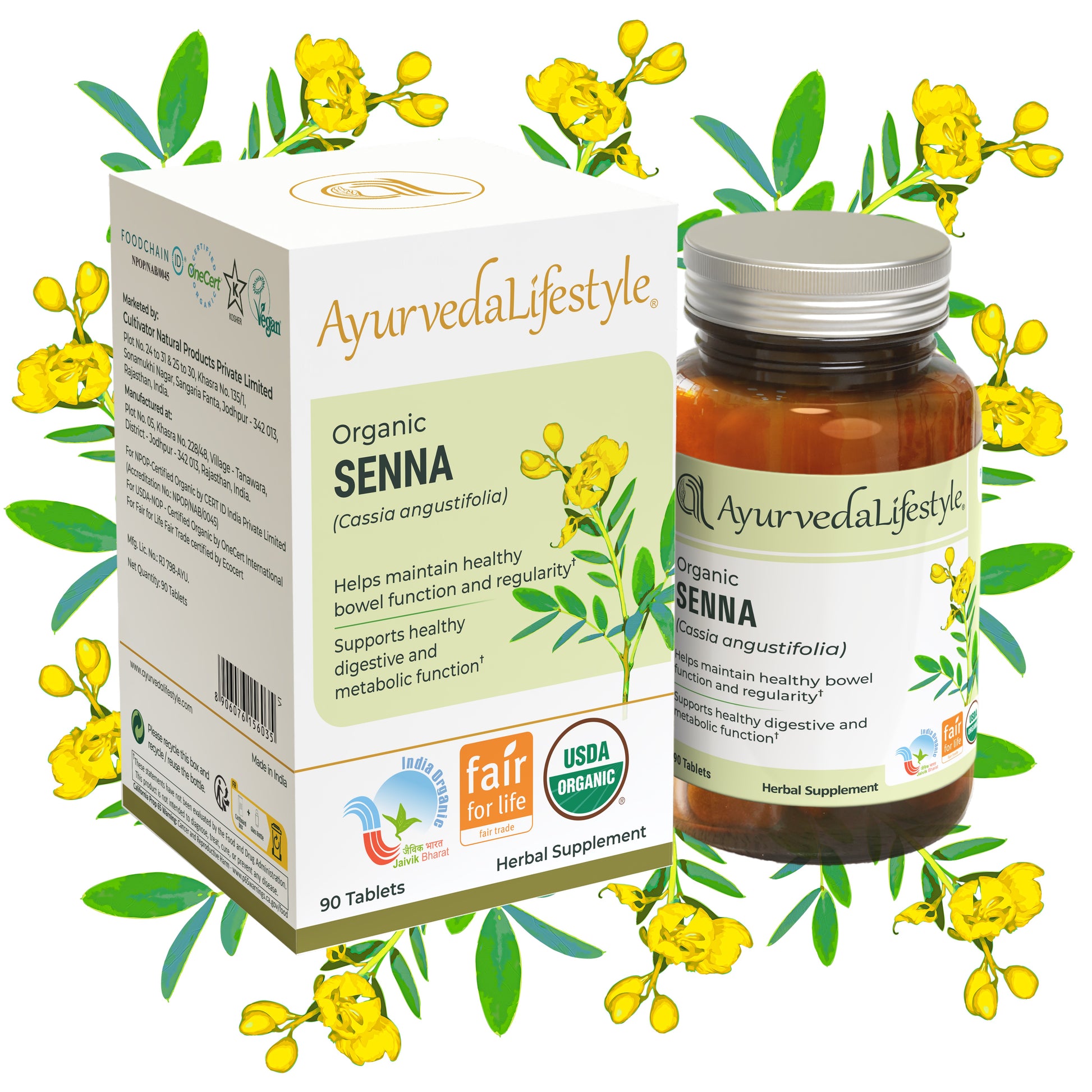 Organic Senna, known as Swarnapatri in Ayurveda, is a revered herb for promoting digestive health and ensuring smooth bowel movements. Ayurveda Lifestyle’s Organic Senna Tablets are crafted from the finest, organically grown Senna leaves, offering a safe and effective solution for relieving constipation and supporting a healthy digestive system. Known for its natural laxative properties, Senna gently cleanses the colon, helping you feel lighter and more balanced every day.
